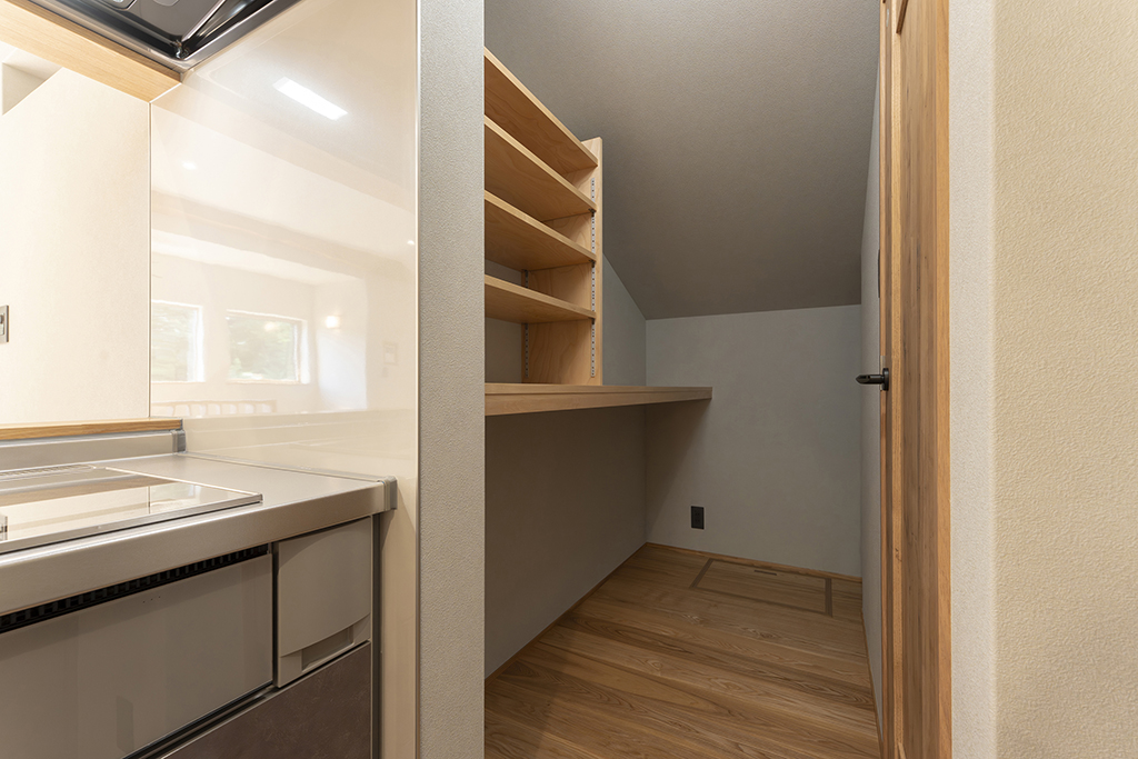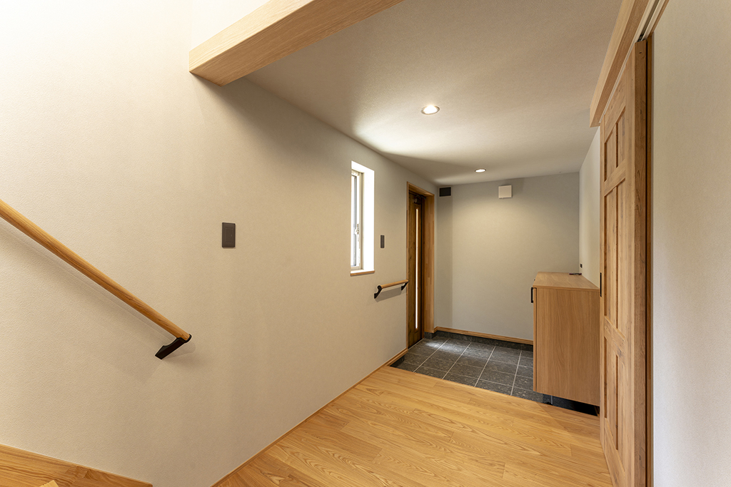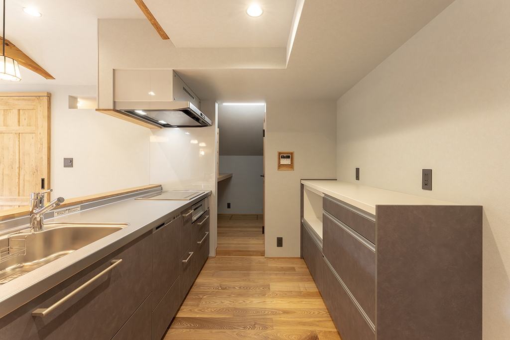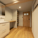 1階廊下・ファミリークローク・パントリーと収納も多くなっています。