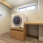 ファミリークロークの鏡はお施主様の持ち込み。そちらに建像屋で枠を施工し取付しました。