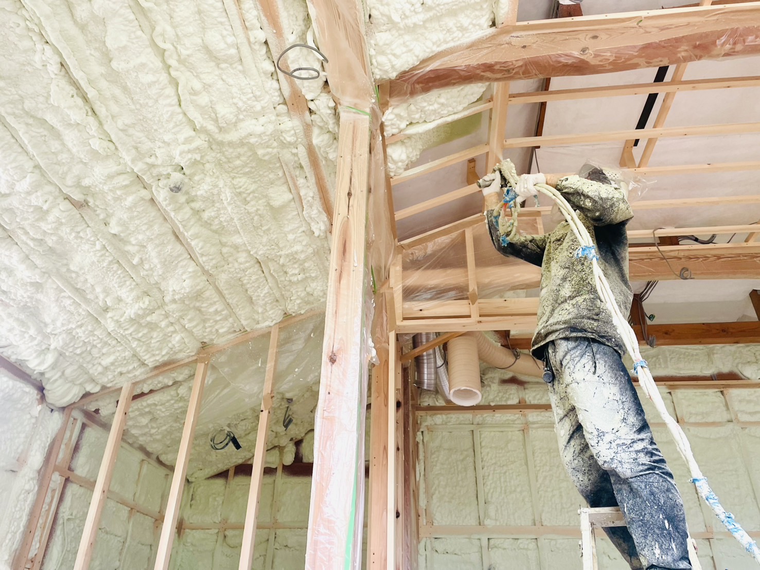 既存の状態で構造体が剥き出しになっている状態だったので、それに補強を加え、下地を組みなおし、断熱施工をして現在の水準の住宅性能にしました。